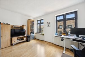 Die Wohnung befindet sich in einem gepflegten Mehrfamilienhaus aus dem Jahre 1916 und ist über einen Laubengang erreichbar – eine praktische Lösung, die zusätzlichen Schutz und Privatsphäre bietet. Die Aufteilung umfasst ein Wohnzimmer, ein Schlafzimmer, eine Küche, eine Diele sowie ein Badezimmer. Die kompakte Struktur eignet sich ideal für Singles oder Paare – und durch die bestehende Vermietung auch hervorragend als fortlaufende Kapitalanlage.